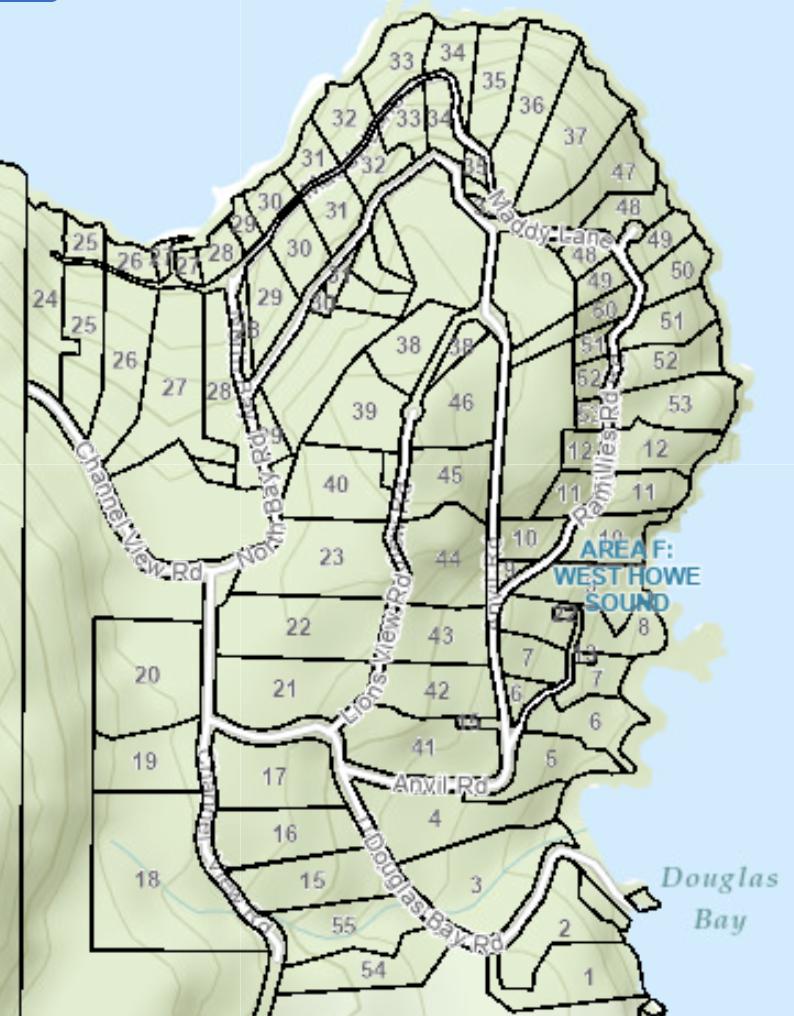 The Douglas Bay Subdivision. Screenshot from SCRD Maps.