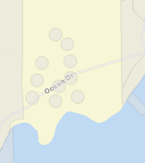 By far the most unusual development on Gambier is an off-grid, 10-lot bare land strata development located at 330 Parfitt Road. This is just east of Gambier Acres Limited. Building sites are listed as individual lots on BC Assessment, and each lot is a 100 ft diameter circle (BC Assessment lists size as 7,840 sqft).